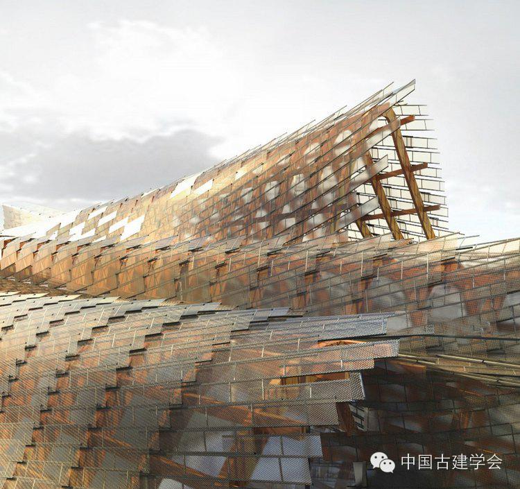 米兰世博会是中国首次以自建馆形式赴海外建馆参展。由于展会跨越春、夏、秋三季,考虑到节能环保、施工便利的需求,中国馆的屋面要轻盈,内部空间跨度又 要大,所以屋顶采用了以胶合木为主材的结构。
